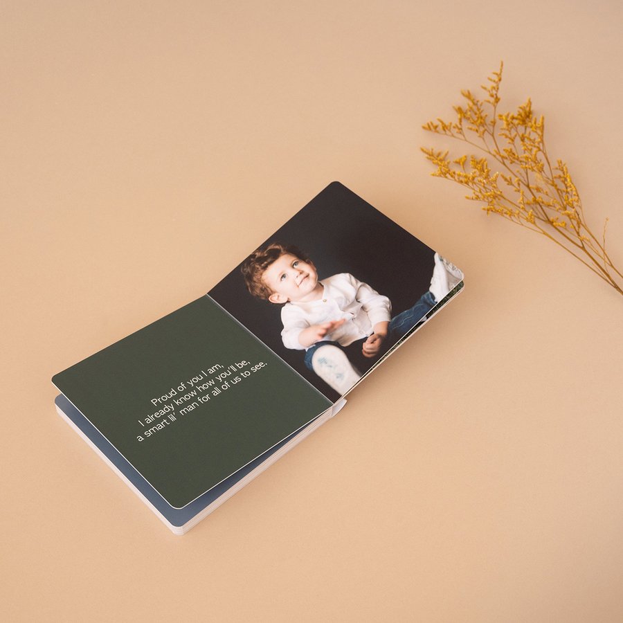 Diseñado especialmente para manos pequeñas, dedica este álbum a los más peques de la casa, coloca una foto de un lado y una frase especial para ellos del otro. Es colorido y llamará mucho su atención.
